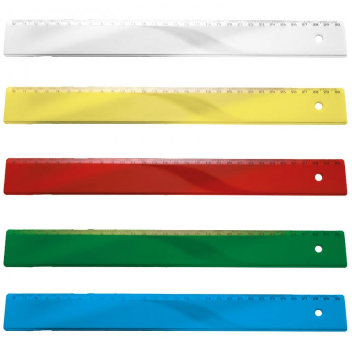 Righello in plastica da 30 cm. Dimensione oggetto cm 31,5 x 3,5. La personalizzazione può avvenire sul fronte con una stampa fino a 2 colori. Altezza stampa mm 20.